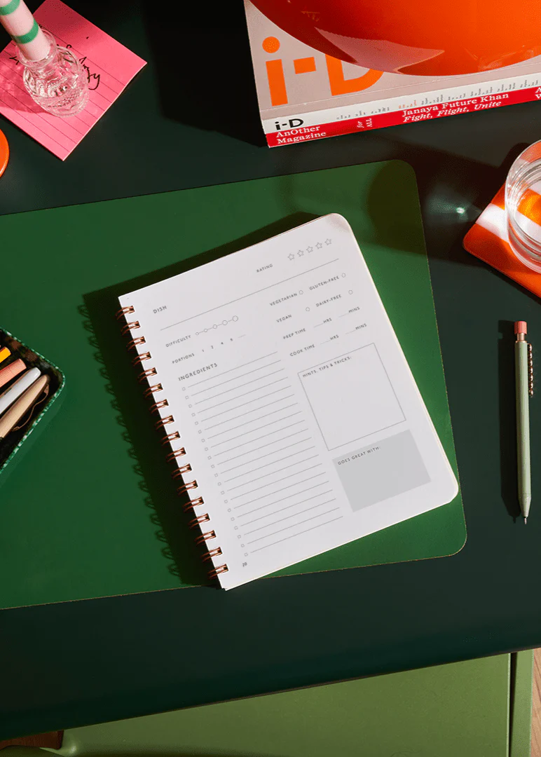 Faites briller vos talents culinaires. Avec les carnets de recettes Papier, vous pouvez noter vos plats prĂ©fĂ©rĂ©s et trouver quelque chose de bon comme de l'or Ă dĂ©vorer. Au dos, vous trouverez les mesures et les conversions de tempĂ©rature, ainsi que des pages pour vos magasins, restaurants et endroits prĂ©fĂ©rĂ©s Ă essayer. Les pages ne sont pas datĂ©es. Remplissez les dates vous-mĂȘme et commencez Ă les utiliser Ă n'importe quel moment de l'annĂ©e.