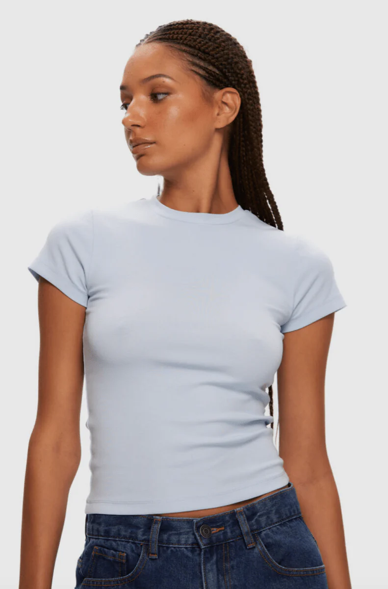T-Shirt Micro Rib Bleu Clair Kuwalla SOLDE Vente Finale