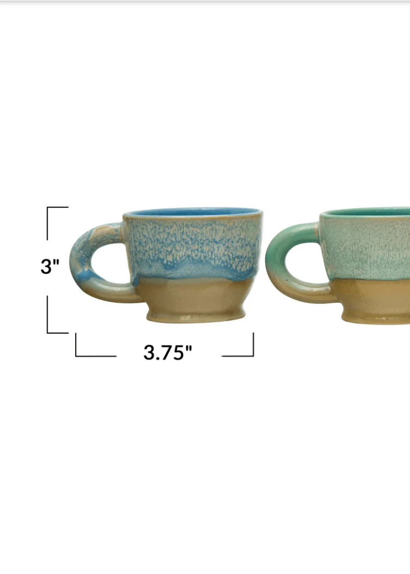 Cet ensemble de mugs en grès d'inspiration côtière présente une glaçure réactive variant naturellement en 3 teintes douces et ludiques.